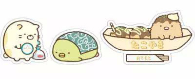 ▲夏天在日本絕對(duì)少不了的慶典,沒想到這群害羞的小家伙們也偷偷跑去參加了,貓咪看著自己撈到的金魚,不曉得在想些什么?而人氣很高的豬排,沒想到居然被人魚目混珠在章魚燒里面啊……