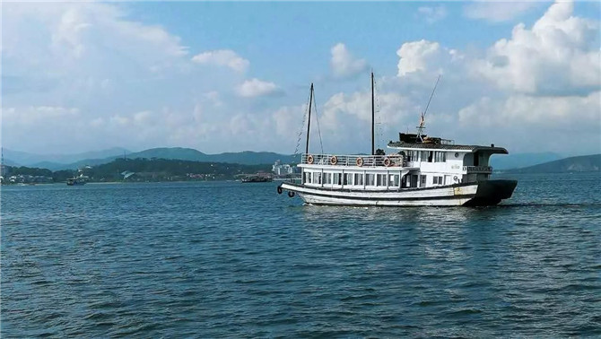 孤獨而又大氣的班船,在海面上前行。淡淡地海風吹過,舒適又安逸。