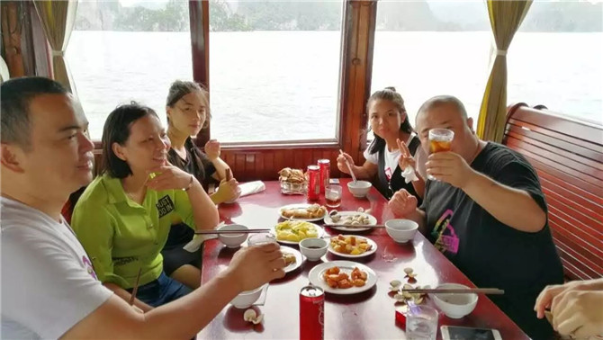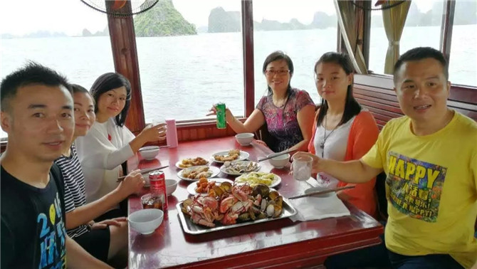 16日天氣轉(zhuǎn)晴,阿松說他們信奉燒香拜佛,前天晚上燒香至凌晨4點祈禱天氣晴朗讓我們?nèi)ンw驗下龍灣的風采,果然皇天不負有心人。于是18羅漢愉快地開啟了早餐時刻:越南的牛肉粉真的巨好吃,每個人至少只吃了3碗而已。