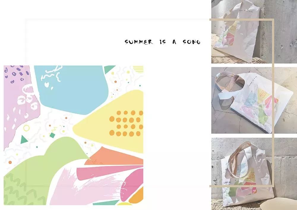 Gradual Summer以Tyvek? 1082D 為主要材質,印上一系列色彩絢麗的圖案,成為一系列夏天主題的包袋,每個包袋都是一個夏日的故事。